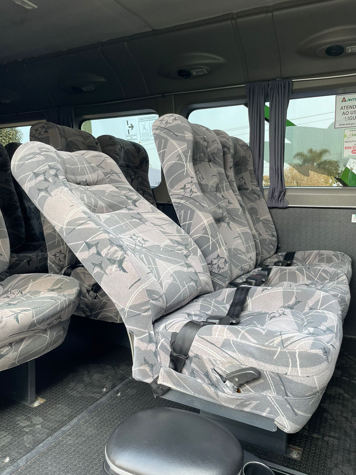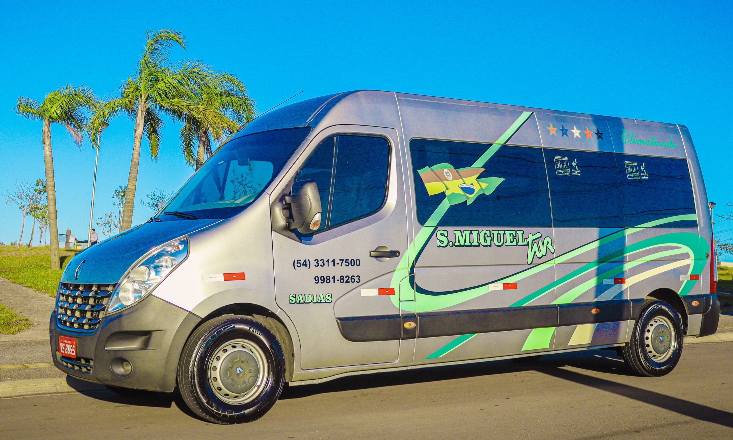 Van ExecutivaRenault Master Mapa da Van Características da Van Executiva Master 15 Lugares Soft Reclináveis; TV e DVD; Som com CD e USB; Wi-Fi; Frigobar; Tomadas 220V; Ar Condicionado; Calefação. Galeria de Fotos Solicite um orçamento! Atendimento por WhatsApp! FALE CONOSCO